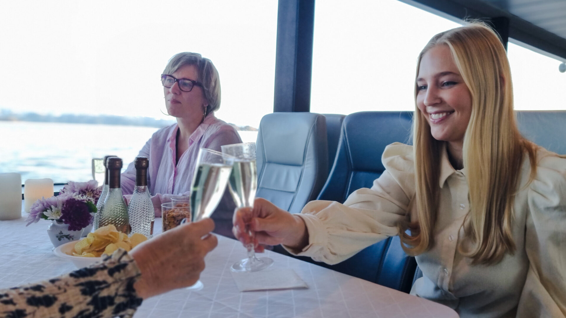 Om bord Rygerdronningen blir det servert fire utvalgte bobler, sammen med smakebiter fra Matboden.